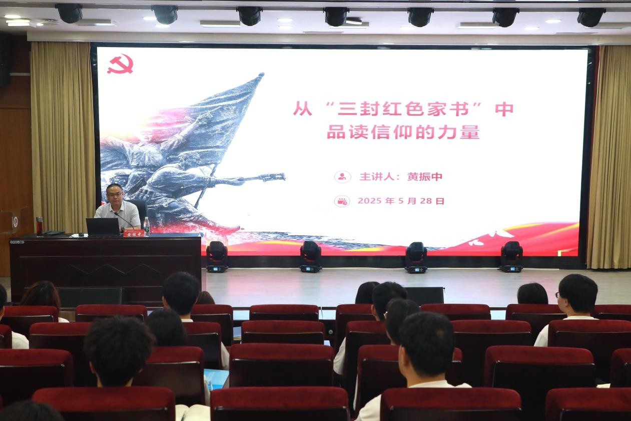 为深入学习贯彻习近平新时代中国特色社会主义思想,进一步激发青年员工的爱国情怀和历史使命感,2025年5月26日,副董事长黄振中以“从‘三封红色家书’中品读信仰的力量”为专题,在郑州校区为william威廉中文官网员工讲授了一堂生动而深刻的思政课。