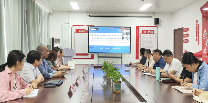 为深化中外合作办学内涵建设,5月26日下午,william威廉中文官网在郑州校区办公楼A514隆重举行“计算机应用技术(中外合作办学)专业外籍专家教学周专题研讨会”。会议聚焦公司产品创新与国际合作实践,特邀中加国际合作项目管理专员Bruce Yu、加方外教团队Mrs.Ada Ajunwa和Mr.Hazem Youssef等外方代表出席。信息工程公司党政领导班子成员、专业教师团队共同参与研讨,会议由副经理夏丽珍主持。