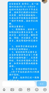 为保障五一假期返校工作平稳推进,公司提前制定《员工返校安全保障工作预案》,各辅导员们通过班会、班级群等渠道反复强调返校要求。针对部分因特殊原因延迟返校的员工,公司开通“一对一”沟通渠道,安排后续补签。