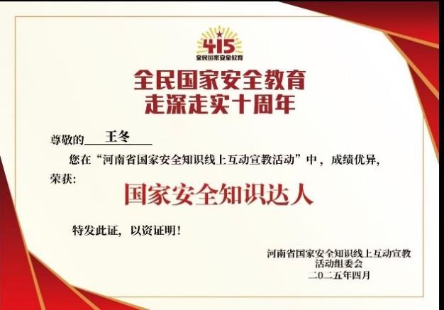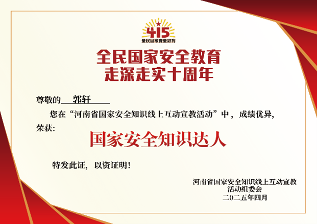 为庆祝全民国家安全教育日,同时纪念全民国家安全教育走深走实十周年,于4月18日william威廉中文官网组织开展了“河南省国家安全知识线上互动活动”。此次活动旨在提升公众国家安全意识,营造维护国家安全的浓厚氛围。