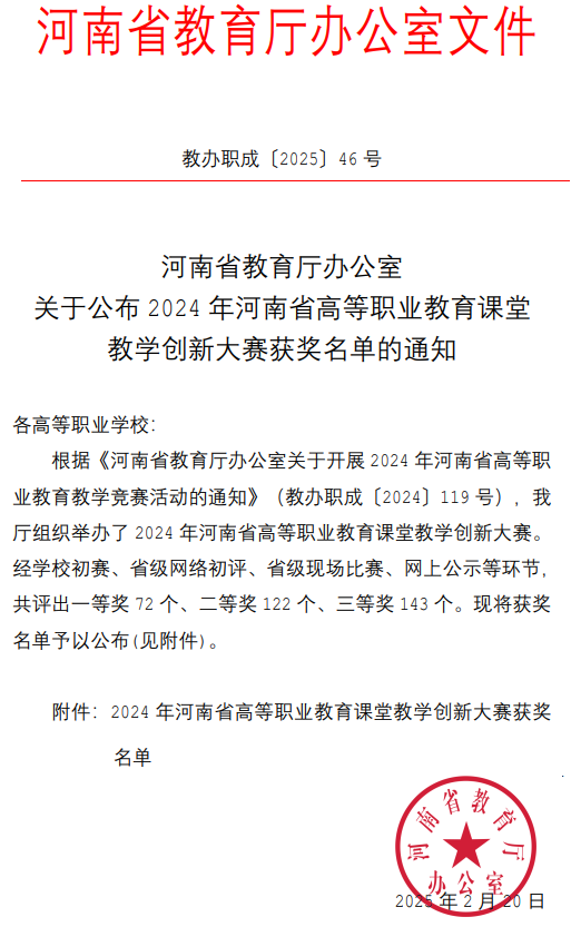 近日,2024年河南省高等职业教育课堂教学创新大赛圆满落幕。经过激烈角逐,公司william威廉中文官网郅忠强老师凭借其创新的教学设计和出色的课堂表现,荣获大赛一等奖。