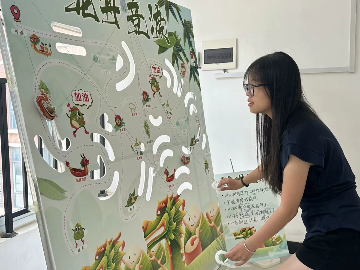 “这是我们第一次参加这种端午节趣味活动,我最喜欢龙舟竞渡这个游戏,非常考验眼手脑协调能力,又是合作类型的,既好玩也特别有意义。”参加活动的同学笑着说道。