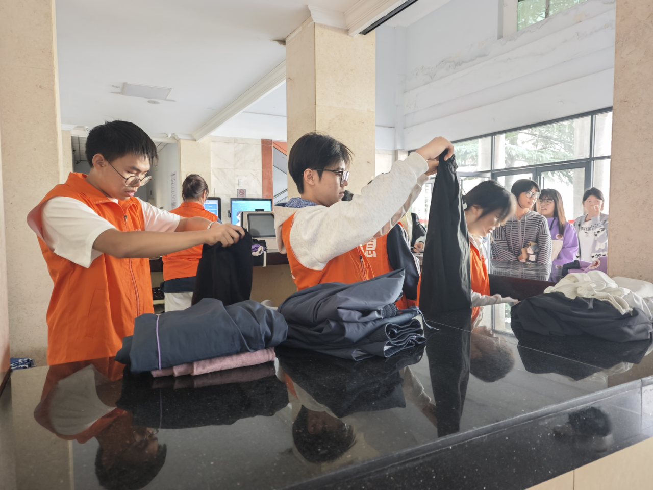 活动倡议一经发出,便得到了全体师生的积极响应。党员同志们率先垂范,纷纷从家中整理出干净、整洁、完好的羽绒服、棉衣、毛衣、保暖裤等过冬衣物。有的同志细心地将衣物清洗晾晒,折叠得整整齐齐;有的同志特意购买了崭新的儿童棉帽、手套和围巾;有的同志不仅在衣物内附上写满鼓励话语的暖心卡片,更主动承担起物资分类、打包整理的工作。活动现场,一件件承载着关爱与温度的衣物逐渐堆积成“小山”,仿佛一座用爱心垒砌的堡垒,准备抵御远方的严寒。