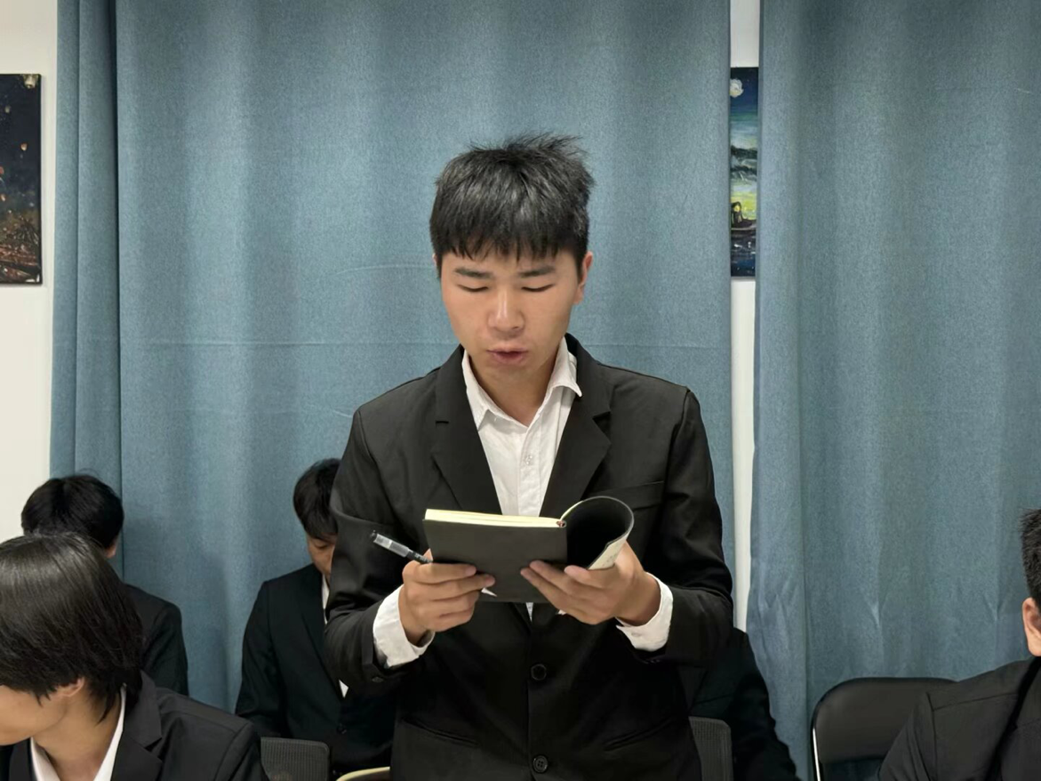 最后,学工党支部书记蒋欣哲进行总结发言,他向新加入的预备党员致以热烈的祝贺。蒋欣哲书记强调,成为一名中共预备党员,不仅是对个人品行和能力的高度认可,更是责任和使命的开始。他鼓励新党员们要继续坚定理想信念,不断提升政治素养,积极参与党组织的各项活动,充分发挥先锋模范作用,为党和人民的事业贡献自己的力量。