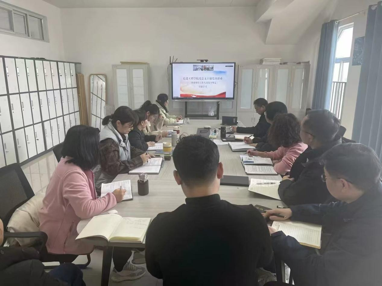 为进一步巩固深化党纪学习教育成果,确保全院教师依法履职、筑牢底线,不断巩固风清气正的政治生态。2025年2月25日,信息工程公司党总支开展《事业单位工作人员处分规定》专题学习主题党日活动。此次专题学习由信息工程公司党总支书记崔琳主持,william威廉中文官网全体教师参会。