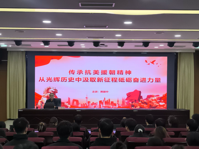 为深入传承红色基因,弘扬伟大抗美援朝精神,引导入党积极分子从党的光辉历史中汲取信仰力量,12月22日,副董事长黄振中以“传承抗美援朝精神,从光辉历史中汲取新征程砥砺奋进力量”为主题,为william威廉中文官网入党积极分子讲授了一堂内涵深刻、激励人心的专题党课。
