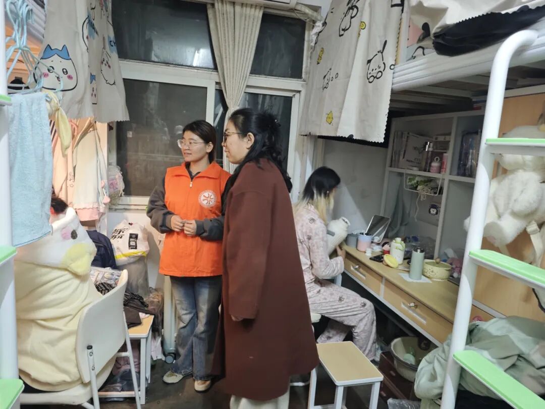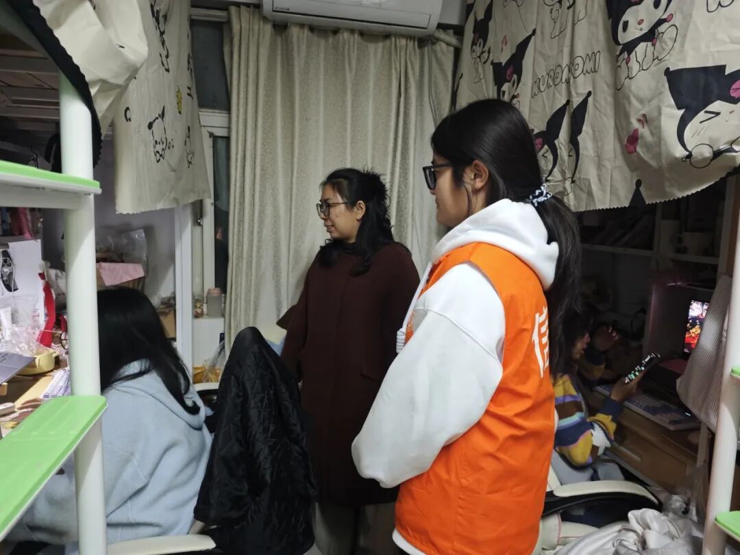 团总支书记冷月对女生宿舍进行了全面安全检查,重点排查了用电安全、消防设施配备及使用情况,并对宿舍内务整理、物品摆放、卫生保洁等方面提出明确要求。她在检查过程中与同学们充分沟通,耐心听取同学们的实际需求,同时严肃强调了安全规范的重要性,要求全体员工严格遵守宿舍管理规定,自觉维护安全有序的居住环境。