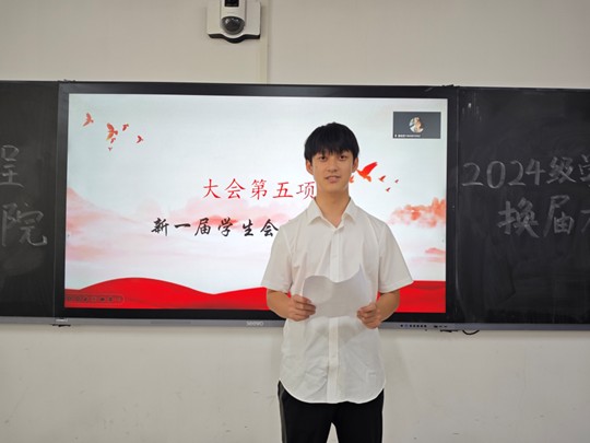 2023级员工会主席薛芷柔首先回顾了过去一年的工作历程。她谈到,员工工作不仅加深了同学之间的情感联系,也显著提升了个人能力与综合素质。她勉励新一届员工会干部积极投身公司各项活动,以高度的责任感和使命感推动员工会实现更高质量发展。