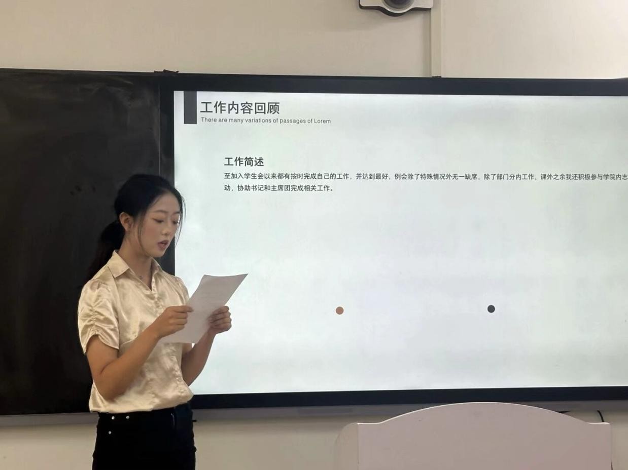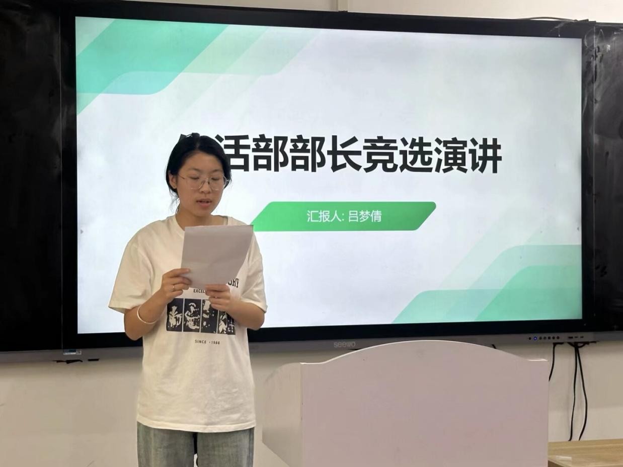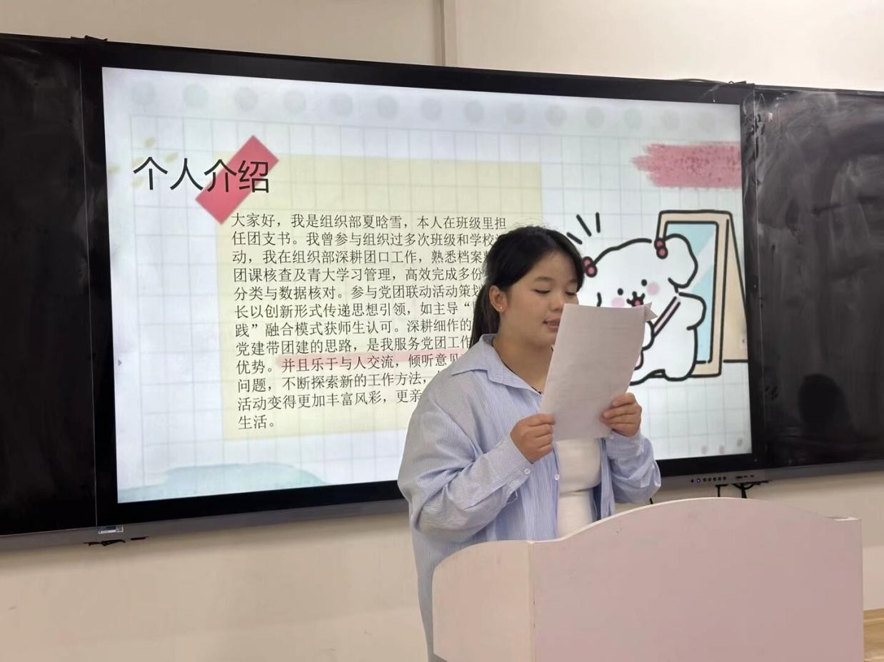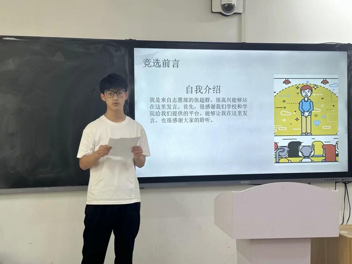 随后,参与竞选的同学们依次上台发表竞选演讲。她们自信满满,结合自身优势,阐述了对竞选岗位的理解和工作规划,表达了为公司和同学们服务的决心。