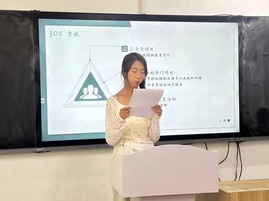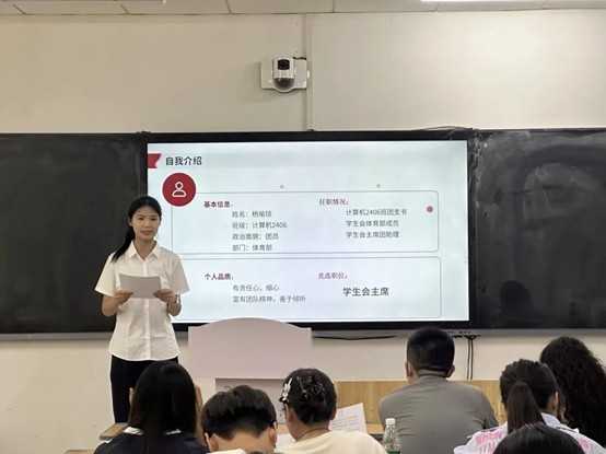 随后,参与竞选的同学们依次上台发表竞选演讲。他们自信满满,结合自身优势,阐述了对竞选岗位的理解和工作规划,表达了为公司和同学们服务的决心。