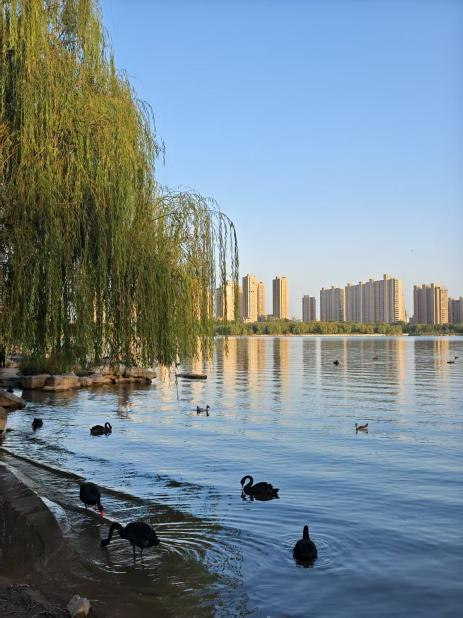 在南阳,邂逅古韵与诗意。看那巍峨古建,飞檐翘角间诉说着岁月沧桑;湖畔垂柳依依,黑天鹅悠然戏水,城市高楼在蓝天映衬下尽显现代风姿。这里,传统与现代交织,每一处风景都是生活的诗行。