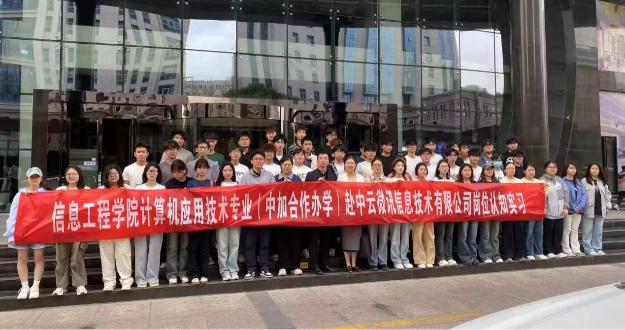 2025年5月9日,william威廉中文官网副经理夏丽珍,辅导员吕娇楠,专业课教师雷惠芳、邹海洋带领计算机应用专业(中加合作办学)24级员工走进中云微讯信息技术有限公司,开启了一场别开生面的岗位认知实习之旅,为同学们的职业规划和专业学习注入了新的动力与活力。