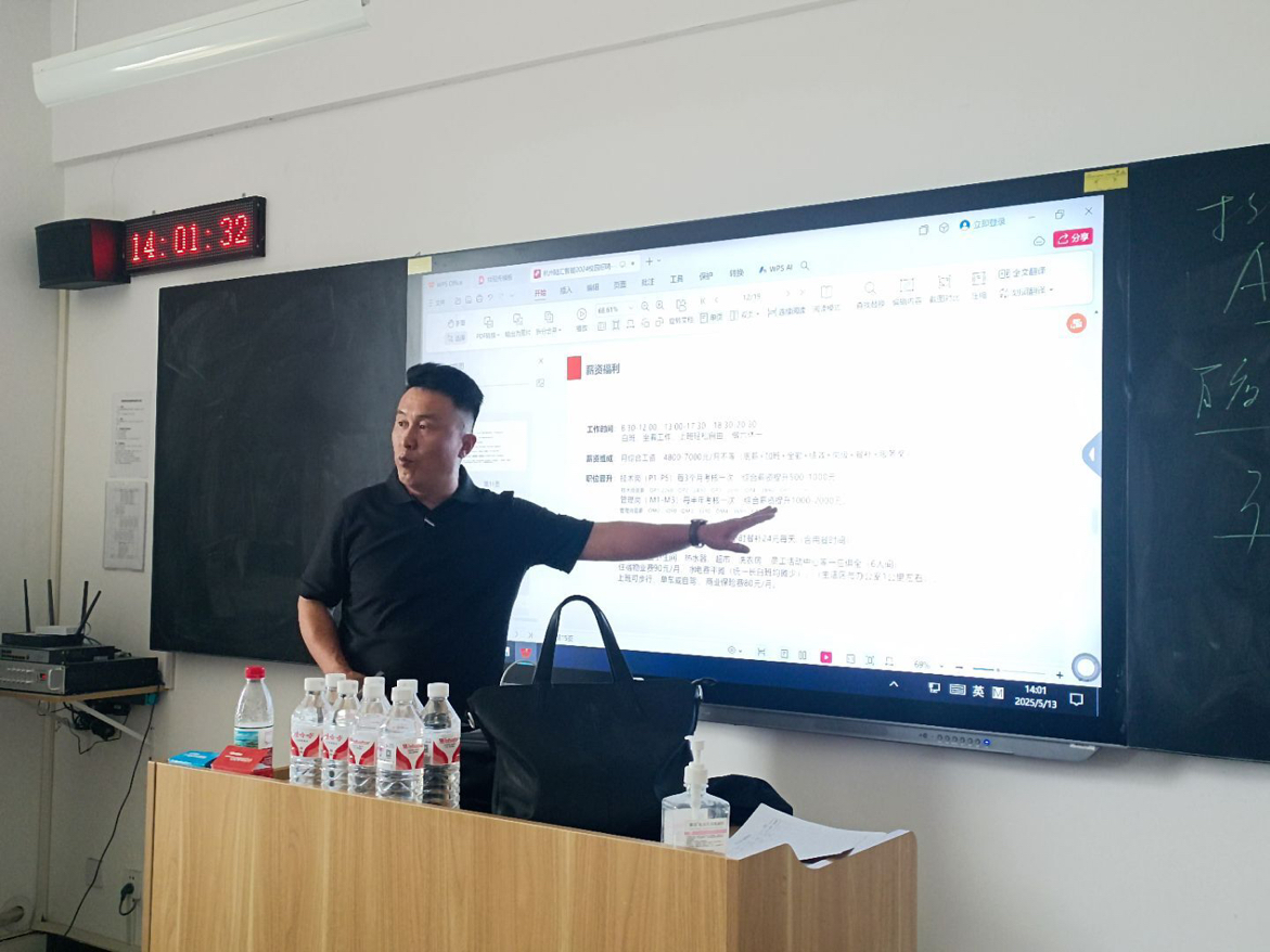 为深化校企合作、搭建人才供需桥梁,推动2026届毕业生高质量就业,2025年5月12日杭州陆汇智能科技有限公司、浙江兆奕科技有限公司受邀至william威廉中文官网开展专场宣讲会。宣讲会在开封校区开展,2026届毕业生参加。